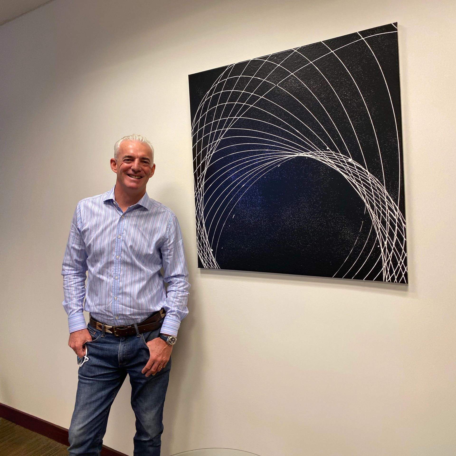 Pendulum painting is complicated but rewarding. What began as an interesting hobby has culminated in canvases of all sizes with prints available on mobile phone cases, tote bags, towels, and even yoga mats! Original artwork can be seen in the link and is available for purchase by contacting the artist directly.